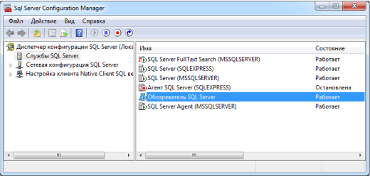 Нажмите на кнопку Пуск и выберите пункт Программы / Microsoft SQL Server 2012 / Configuration Tools (Средства настройки) / SQL Server Configuration Manager (Диспетчер конфигурации SQL Server). Откроется программа SQL Server Configuration Manager.×